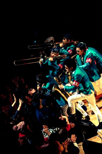 湘南出身/昭和音楽/SHOW-TIMEのSKAバンド。ロック、ポップ、ジャズ、ムード歌謡、クラシック、テレビ映画音楽と多彩なSKAアレンジを奏でる総勢11名のパフォーマンス集団!名門「西麻布CLUB YELLOW」マンスリー開催「LOVE LOVE NIGHT」は8年間に亘り、その閉店迄レギュラー出演を務め都内クラブシーンの歴史にその名を記した。現在は、大御所ミュージシャン憩いのROCK BAR「南青山レッドシューズ」にて奇数月第1土曜日に単独イベント「東京赤い街」を開催中。